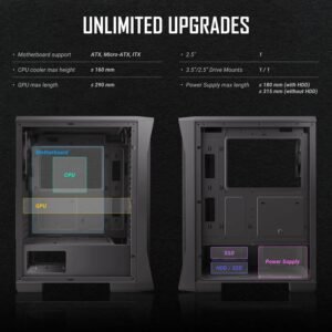| Maximum PSU Length | 180mm (220mm if HDD cage removed) |