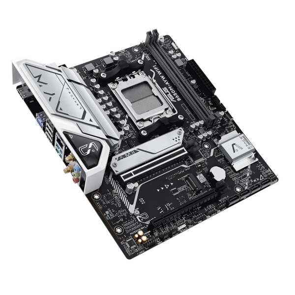 AMD B650 Micro-ATX motherboard with DDR5, PCIe 5.0 M.2 support, HDMI, Realtek 2.5Gb Ethernet, Wi-Fi 6, rear USB 10Gbps ports, front USB 5Gbps Type-C, SATA 6 Gbps, Two-Way AI Noise Cancelation, Aura Sync