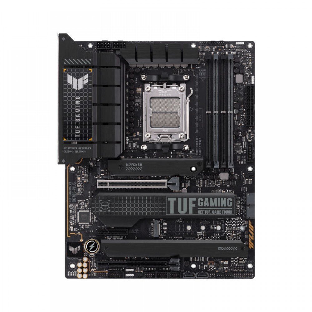 ASUS TUF GAMING X670E-PLUS takes all the essential elements of the latest AMD Ryzen 7000-series processors and combines them with game-ready features and proven durability. Engineered with military-grade components, an upgraded power solution and a comprehensive cooling system, this motherboard goes beyond expectations with rock-solid and stable performance for marathon gaming. TUF GAMING motherboards also undergo rigorous endurance testing to ensure that they can handle conditions where others may fail. Aesthetically, this model incorporates rugged off-black and geometric design elements to reflect the dependability and stability that defines the TUF GAMING series.