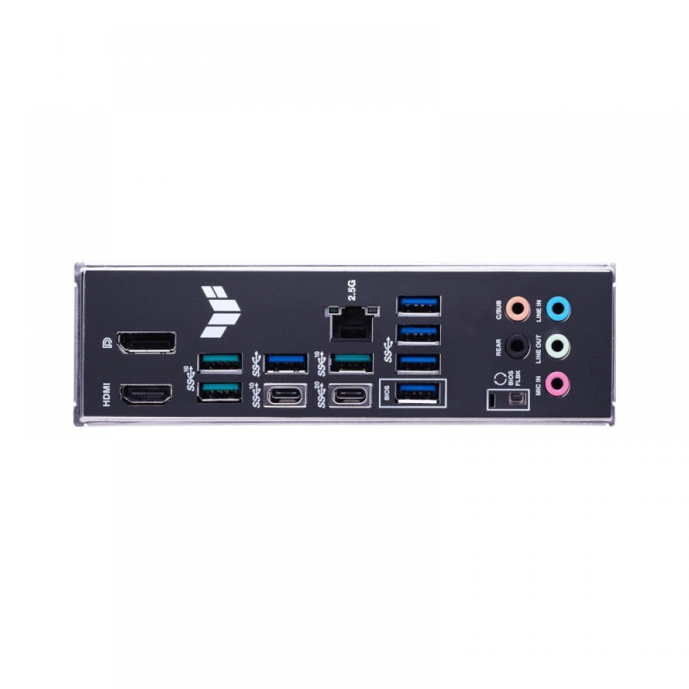 4 x USB 3.2 Gen 2 ports (3 x Type-A, 1 x USB Type-C®) 5 x USB 3.2 Gen 1 ports (5 x Type-A) 1 x DisplayPort 1 x HDMI® port 1 x Realtek 2.5Gb Ethernet port 5 x Audio jacks 1 x BIOS FlashBack™  button |