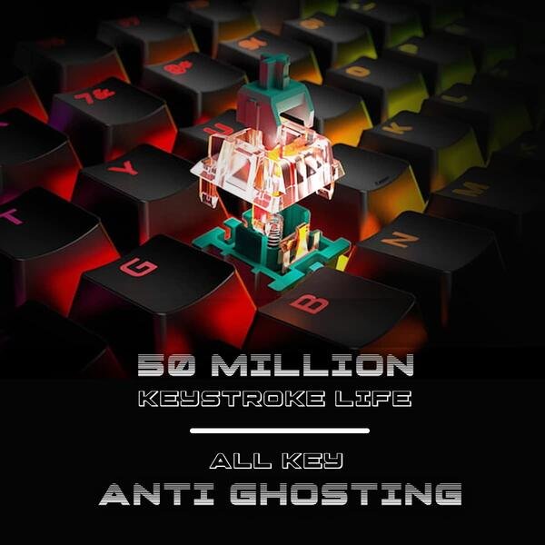 The keyboard has well-crafted keycaps with great grip. The keys installed in the Vanth Mechanical Keyboard are made to withstand a key life of over 50 million-plus operations for each key.