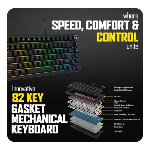 - Cosmic Byte Gasket-Mounted Design: Built with silicone gaskets for a softer, more flexible typing experience, reducing noise and improving key feel.