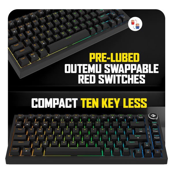 - Pre-Lubed Outemu Red Switches: Smooth, linear switches that are factory-lubed for reduced friction and enhanced performance, rated for 50 million keystrokes.